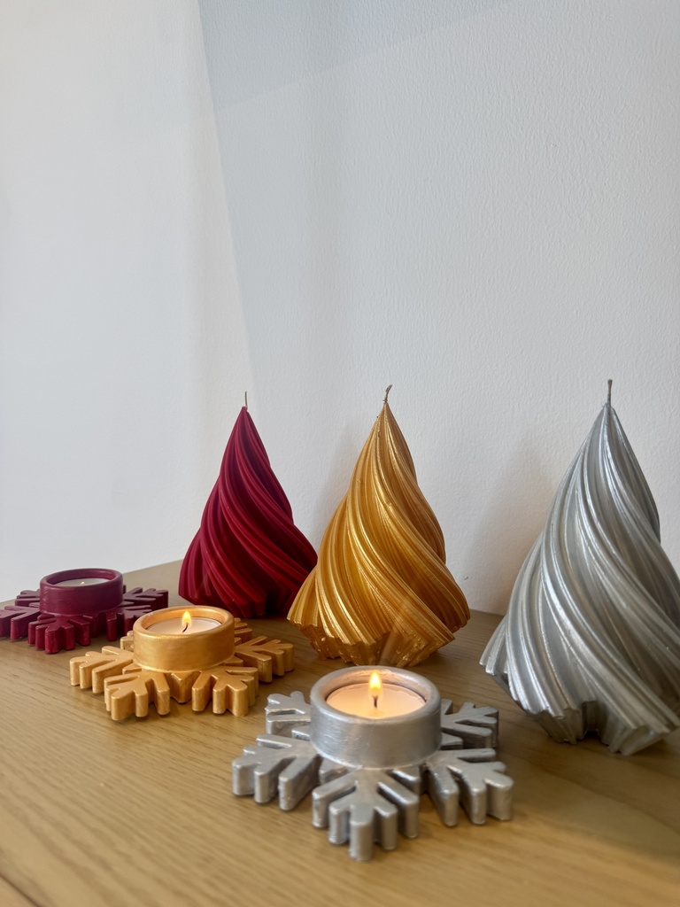 Set OF Christmas Tree Candle + Snowflake Tea light Candle Holder